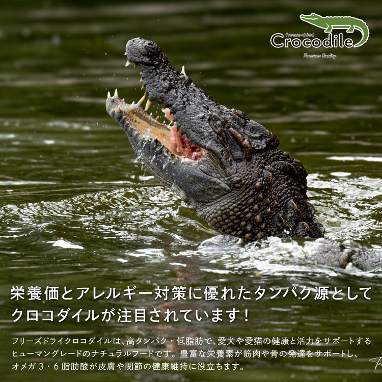 多くのペットが一般的な家畜肉に反応するなかで、クロコダイルは低アレルギー性であり、食事に悩む飼い主にとって理想的な選択肢です。